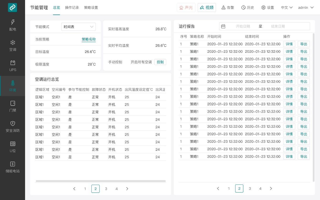(1)空調(diào)用電的優(yōu)化,在滿足機(jī)房熱負(fù)荷需求、環(huán)境溫度要求的前提下,通過自動調(diào)節(jié)空調(diào)出回風(fēng)溫度設(shè)定、運行數(shù)量來實現(xiàn)空調(diào)用電的最優(yōu)化。